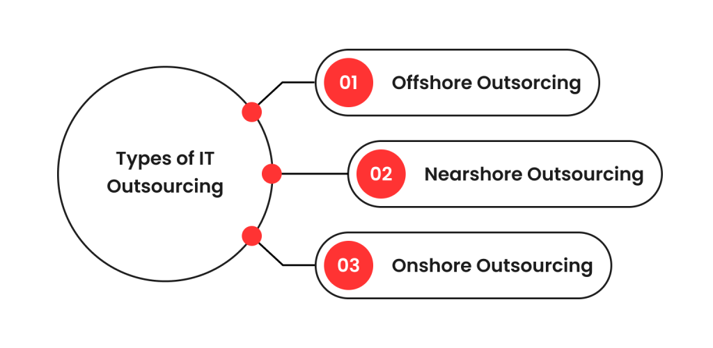 There are 3 main types of outsourcing based on where the service is provided: