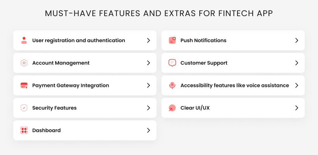 - Must-Have Features and Extras for Fintech App Development