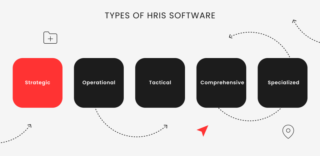 - Strategic. Strategic HRIS tools help the company evaluate the current state of affairs in the HR department, create short-term and long-term goals and projections, and correct the course if necessary.