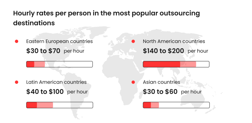 Now, let’s look at the average hourly rates per person in the most popular outsourcing destinations: