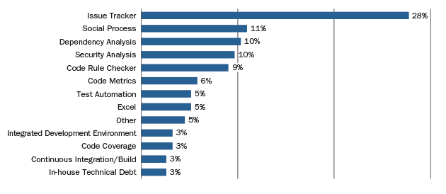 Research of SEI showed that only a few developers and managers are using tools to measure and track their technical debt. The most common of them are Duecode, JShint, Gitprime, Codegrip. There is a list of tools and metrics of technical debt they listed – check it out yourself.