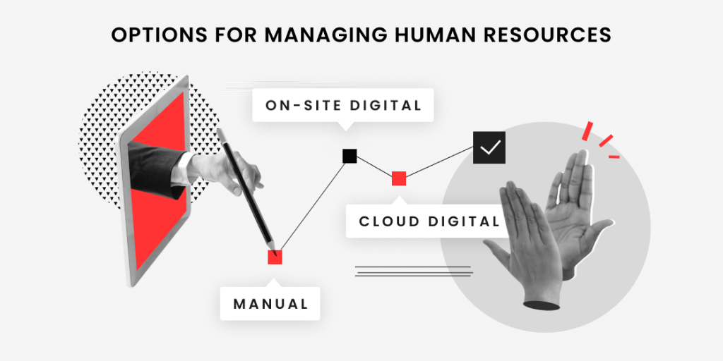 - Manual. Managing human resources manually is how it has been done for decades until companies began adopting digital technologies. Manual HR management is associated with large amounts of paperwork, and it’s also prone to error. Moreover, even storing the paperwork and finding the necessary data can often prove challenging.