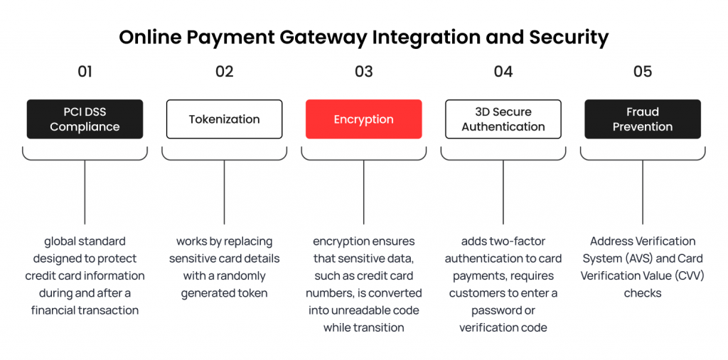 - Security. Payment gateways encrypt sensitive information (like card details), ensuring secure transmission between the customer, merchant, and payment processor. This helps protect businesses from fraud and ensures compliance with regulations like PCI DSS (Payment Card Industry Data Security Standard).