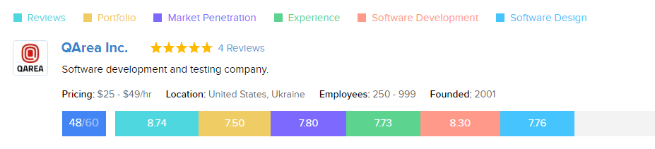 Have a glance at the impressive scorecard of QArea Inc. for its software development services at GoodFirms: