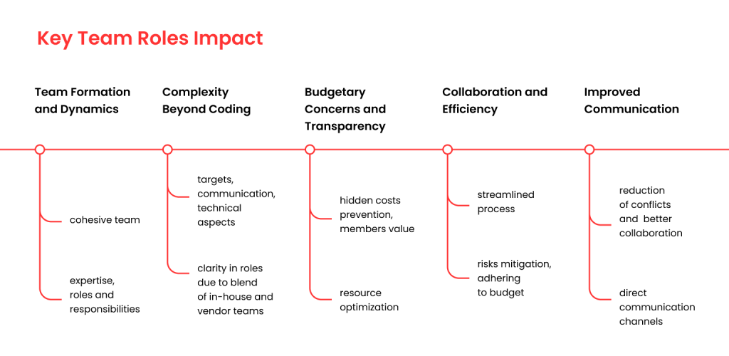 Software development, while intricate, is more than just the sum of its parts. The right team dynamics can significantly boost productivity and prevent costly mistakes. Here’s a breakdown of the importance of defining clear roles in an outsourced software development team: