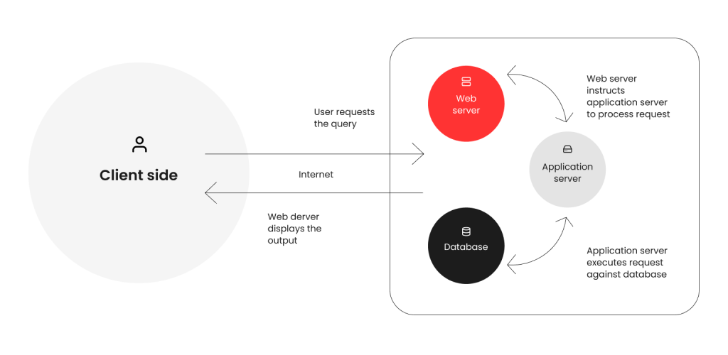 - A user sends a request to the server. They can do it through web browsers or other client applications connected to the Internet.