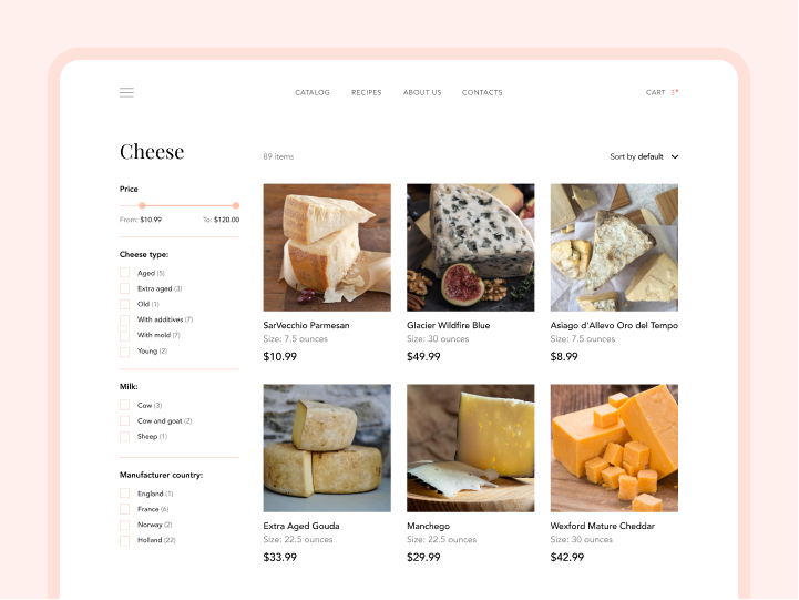 Our designers carefully studied the client’s business, their values and philosophy. We used the information we gathered to conceptualize a unique design that gracefully combines simple functionality with minimalist shapes, smooth interactive elements, and mouth-watering images. The design features very clean, aesthetically pleasing layouts and search filters that make it easy for customers to browse through a rich variety of premium organic products. To provide a gratifying shopping aftertaste, the shopping cart was equipped with a list of suggested recipes that are based on the goods the customer has chosen to buy.